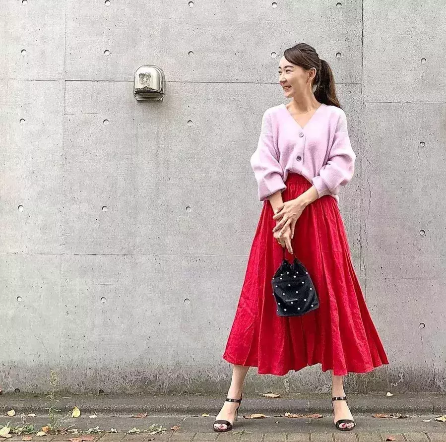 大人かわいい秋のピンクスタイルはスカートで Charmmy
